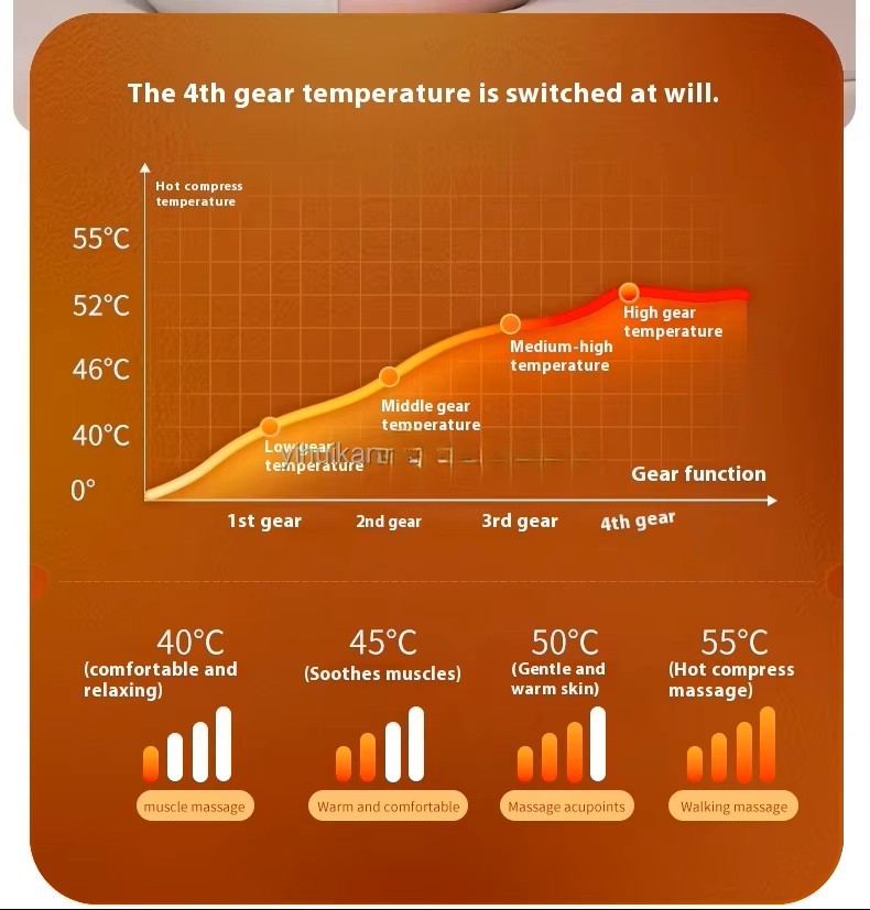 Enheden opvarmer hurtigt og holder en behagelig temperatur – ideel til at øge blodcirkulation, reducere spændinger og forbedre hudens elasticitet.