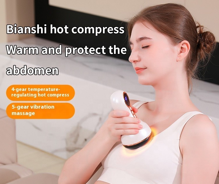 Forkæl din krop med moderne wellness! Dette elektriske Gua Sha massageapparat kombinerer traditionel kinesisk terapi med ny teknologi. Den glatte Bian-sten giver en naturlig og blid kontakt med huden, mens varmeterapi og 5 justerbare hastigheder giver effektiv lindring og afslapning.
