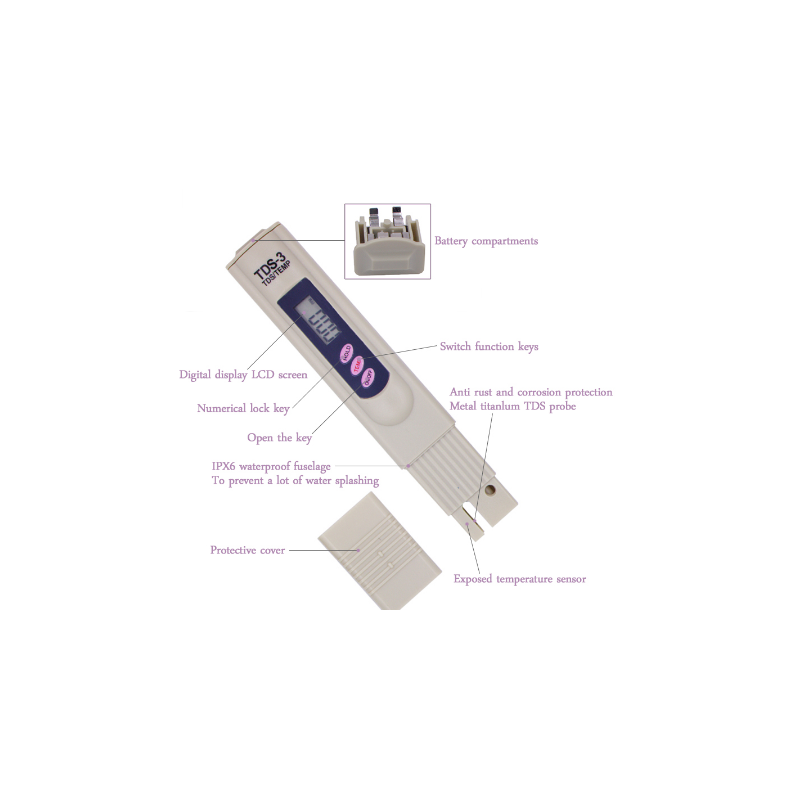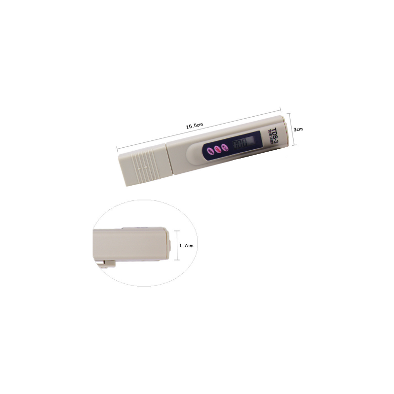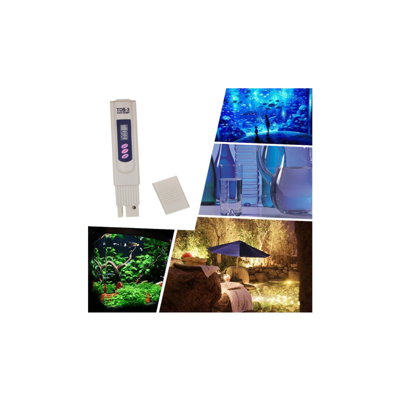 Få full kontroll över din vattenkvalitet med denna effektiva 2-i-1 TDS-vattenkvalitetsmätare som kombinerar mätning av TDS (Total Dissolved Solids) och temperatur i ett kompakt och användarvänligt verktyg. Perfekt för akvarier, dricksvatten, vattenfilter, hydroponik, pooler, spa, laboratorier och andra miljöer där vattenkvalitet är avgörande.