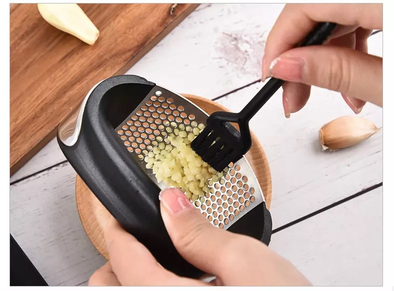 Här får du en smart och praktisk vitlökspress med allt du behöver för att snabbt och enkelt hantera vitlök i köket. Den är designad för effektiv pressning utan spill och ger dig finpressad vitlök på bara några sekunder.