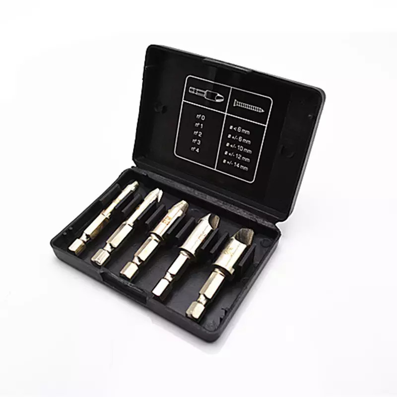 Satsen är designad för att ta bort skruvar på 10 sekunder eller mindre (beroende på skruv och material) och fungerar på ett brett utbud av skruvtyper – till exempel Phillips (kryss), spårskruvar, hex/imbus, målade eller rostiga skruvar och mycket mer.