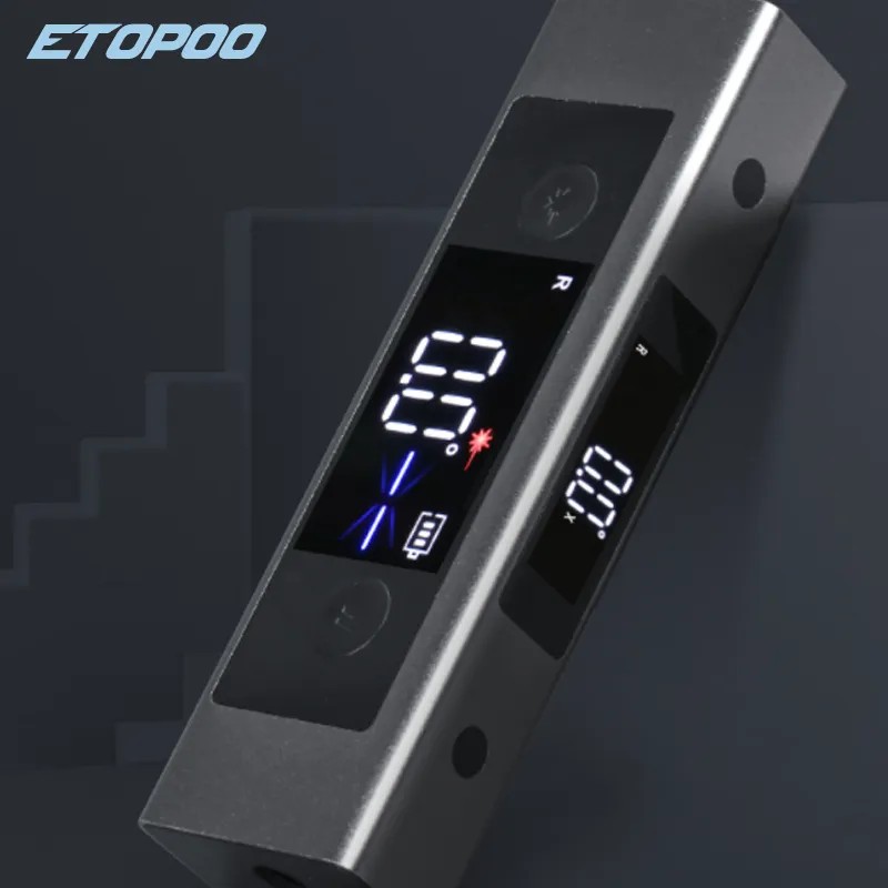 Med ett hölje i borstat aluminium och ett kompakt format är den både slitstark och smidig att bära med sig. Den dubbelsidiga LED-displayen gör den lätt att läsa av från flera vinklar, och den smarta 360°-hållaren/foten gör det enkelt att placera verktyget stabilt under arbetet.