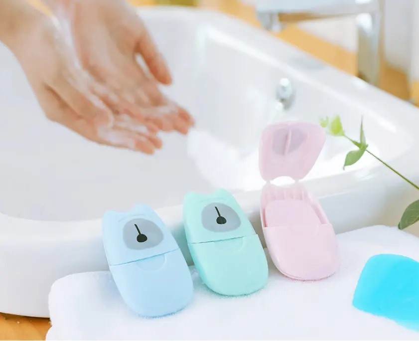 Tunt tvålpapper i låda, perfekt för resor eller kontoret. Praktisk och hygienisk lösning för snabb handtvätt var som helst.