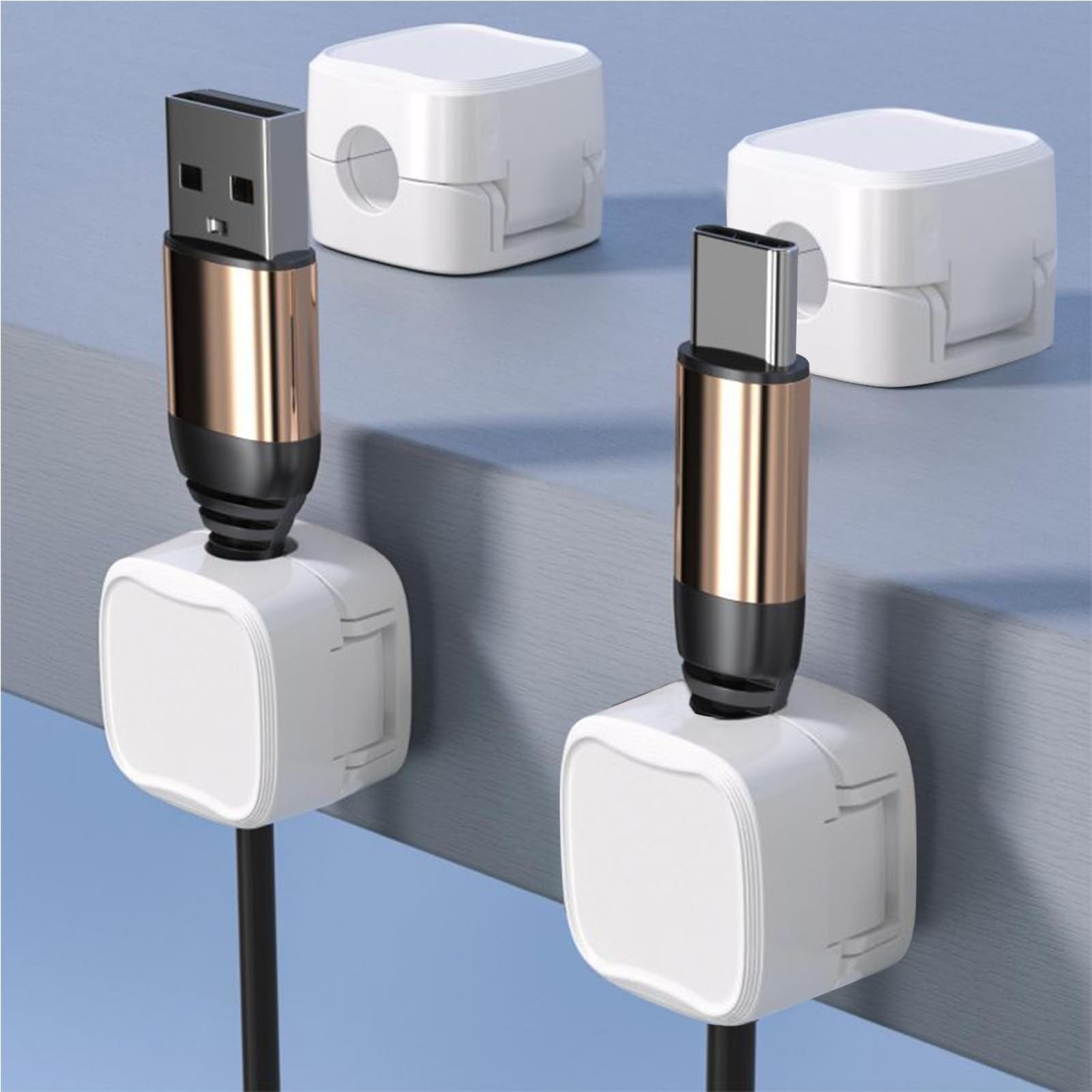 Den starka självhäftande tejpen gör det enkelt att montera hållarna på skrivbord, väggar, nattduksbord, hyllor, skåp eller nästan alla släta ytor. De magnetiska clipsen ser till att kablarna hålls på plats och inte glider ner bakom bordet.