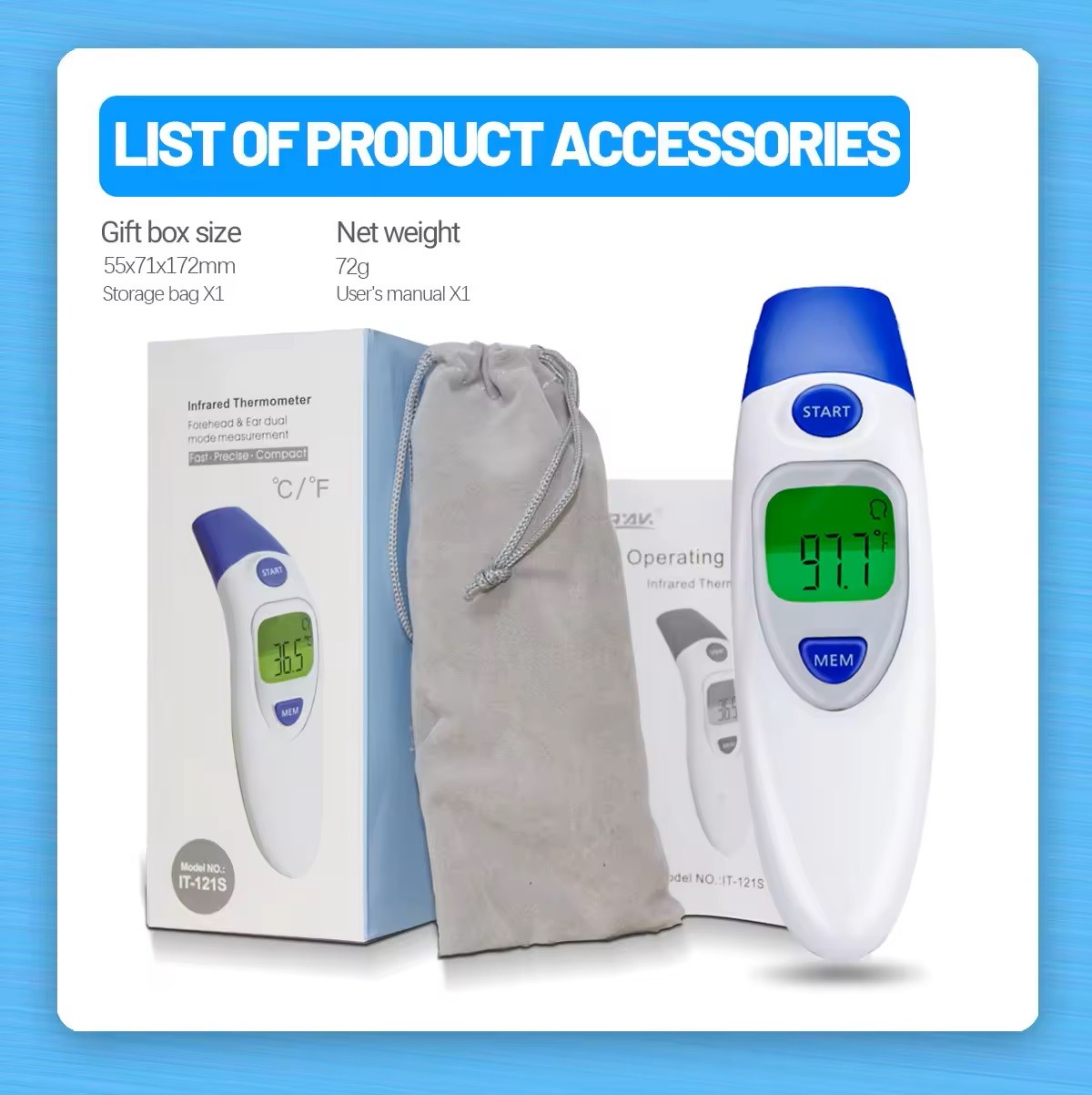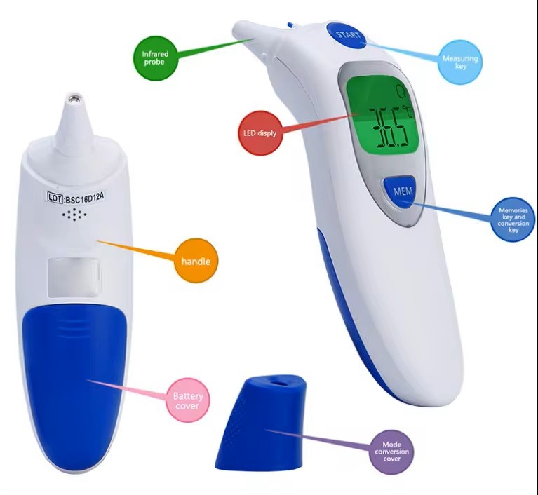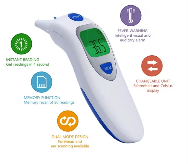 Termometern kan mäta både i örat och på pannan, vilket ger flexibilitet beroende på situationen. Med snabb responstid och hög noggrannhet kan du lita på resultaten, oavsett om den används hemma, på klinik eller i institution.