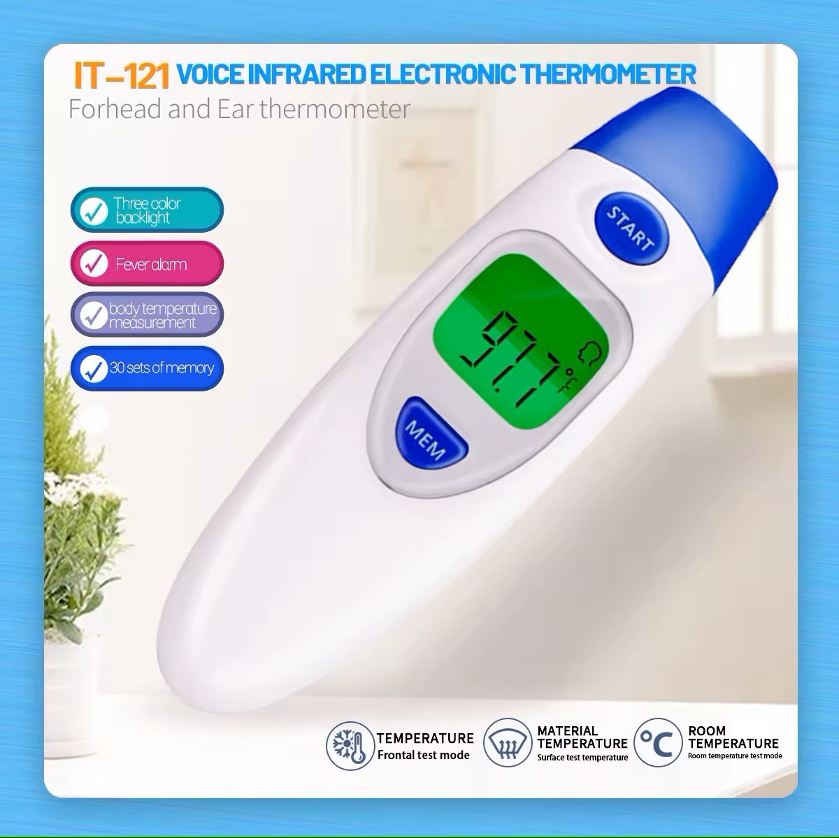 Det stora, lättavlästa displayet gör att du enkelt kan läsa temperaturen, även på natten eller i svagt ljus. Den ergonomiska formen gör termometern bekväm att hålla och enkel att använda, även för oerfarna användare.