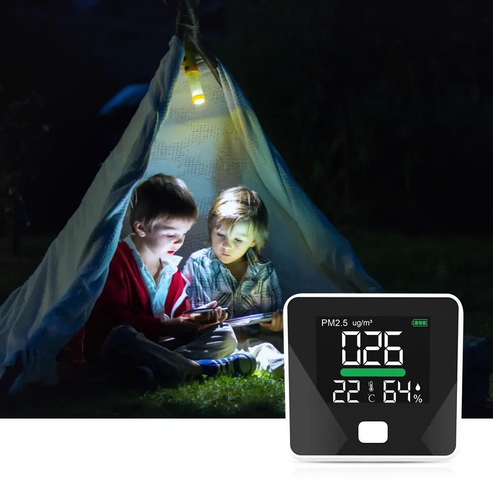 Övervaka luftkvaliteten omkring dig med denna PM 2.5-luftkvalitetsmätare – en avancerad och användarvänlig enhet som mäter partiklar i luften med hög precision. Den är utrustad med ett laserbaserat sensorsystem och visar resultaten i realtid på en digital LED-display.