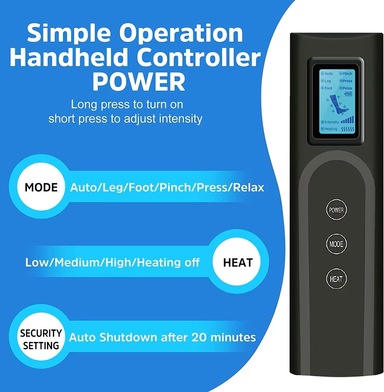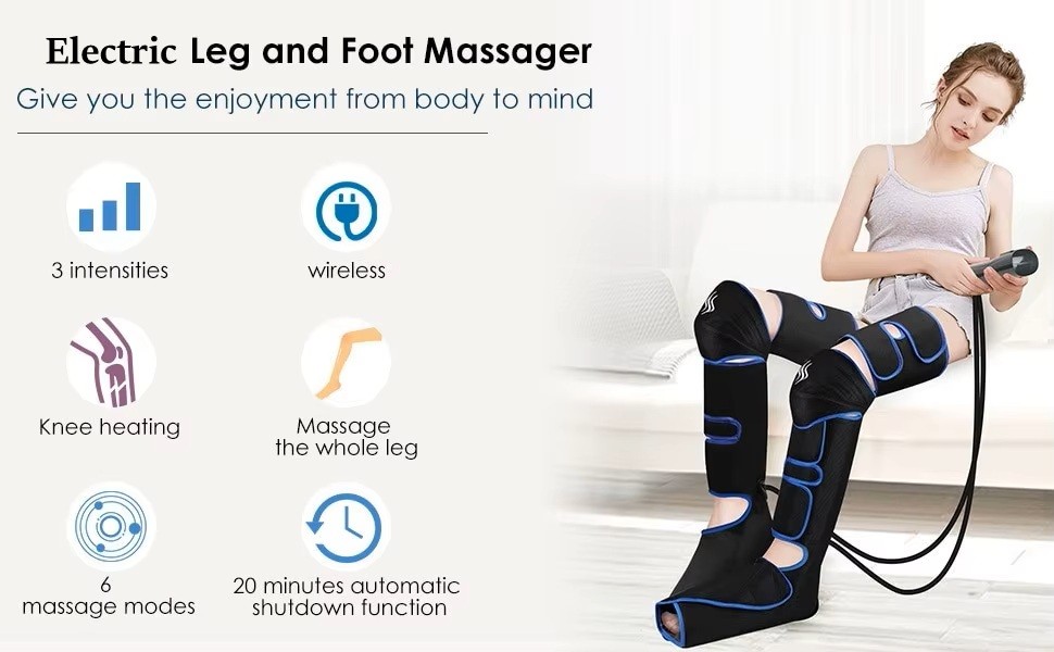 För din säkerhet och komfort stannar benmassageapparaten automatiskt efter 20 minuters användning. Detta förhindrar övermassage och är särskilt lämpligt för äldre eller för den som kan somna under behandlingen. Vill du ha mer massage? Slå bara på apparaten igen och fortsätt njuta.