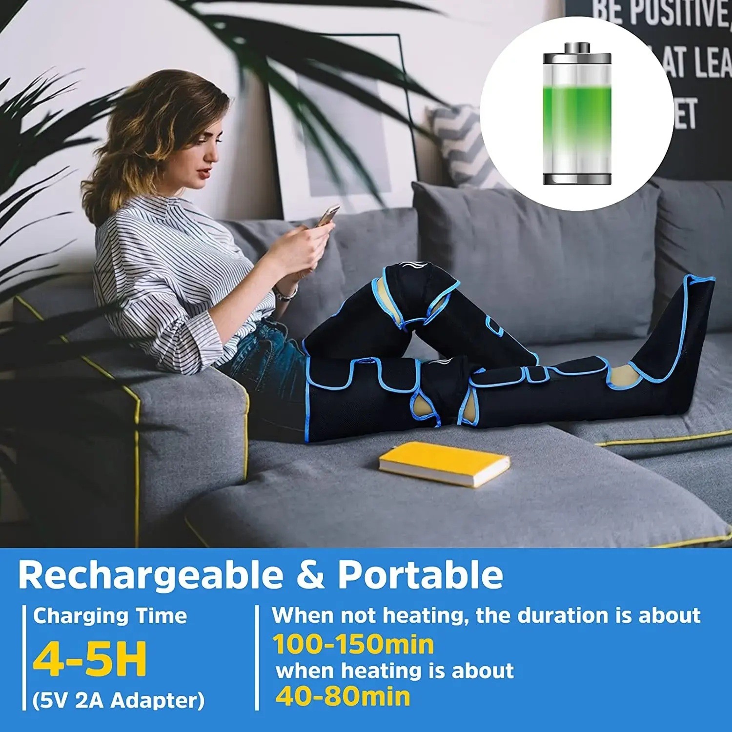 Med en praktisk och trådlös design slipper du störande kablar och begränsningar. Ta med dina Recovery Boots till jobbet, gymmet eller sommarstugan – och njut av 2–3 timmars användning på en full laddning (laddning tar ca. 4 timmar).