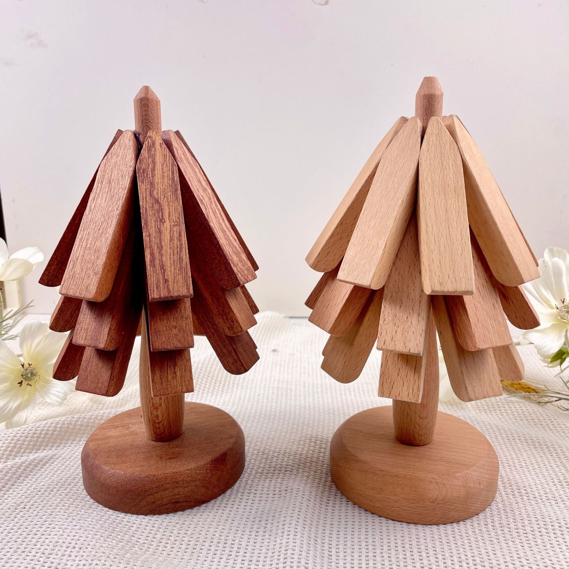 Tillför ett vackert och praktiskt element till ditt kök och matbord med detta unikt formade grytunderlägg i trä. Med sin dekorativa design utskuren som ett träd skyddar det dina bord mot varma grytor, fat och pannor – samtidigt som det fungerar som en stilfull och naturlig inredningsdetalj.