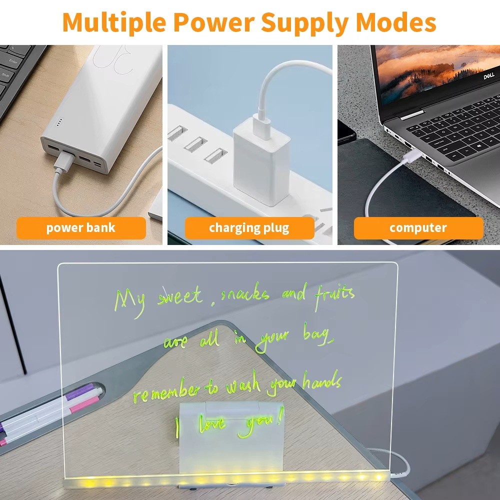 Oavsett om du vill skriva kom-ihåg-lappar, rita små motiv eller skapa att-göra-listor, erbjuder denna LED-tavla ett färgstarkt och inspirerande sätt att kommunicera på. Det klara akrylmaterialet och de lysande LED-färgerna ger ett unikt visuellt uttryck som passar perfekt hemma, i barnrummet, på kontoret eller i butiken.