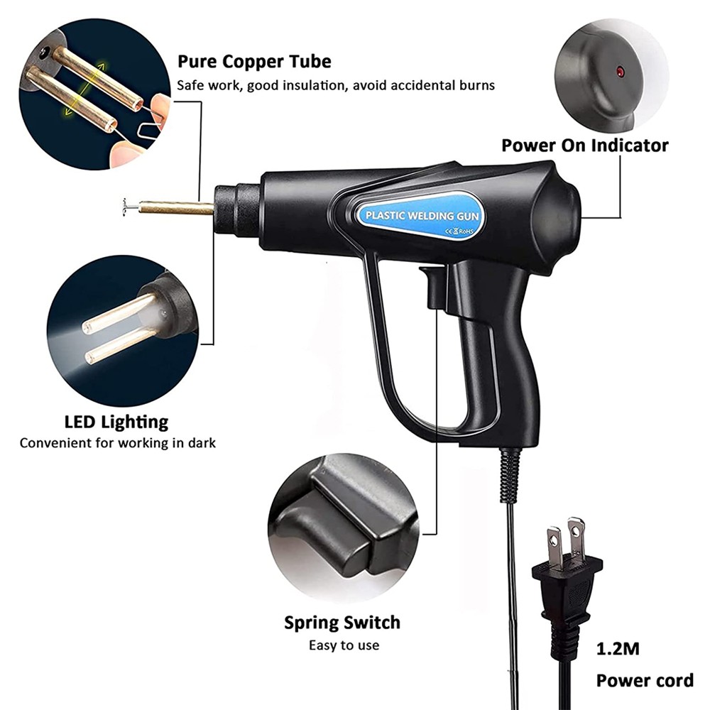 Reparera plastdelar snabbt, säkert och professionellt med denna kraftfulla 70W plastsvets. Den är idealisk för reparation av stötfångare, kajaker, motorcykelplast, instrumentpaneler, lampfästen, handtag och många andra typer av plast – och kan användas på upp till 98 % av alla plastmaterial på marknaden.