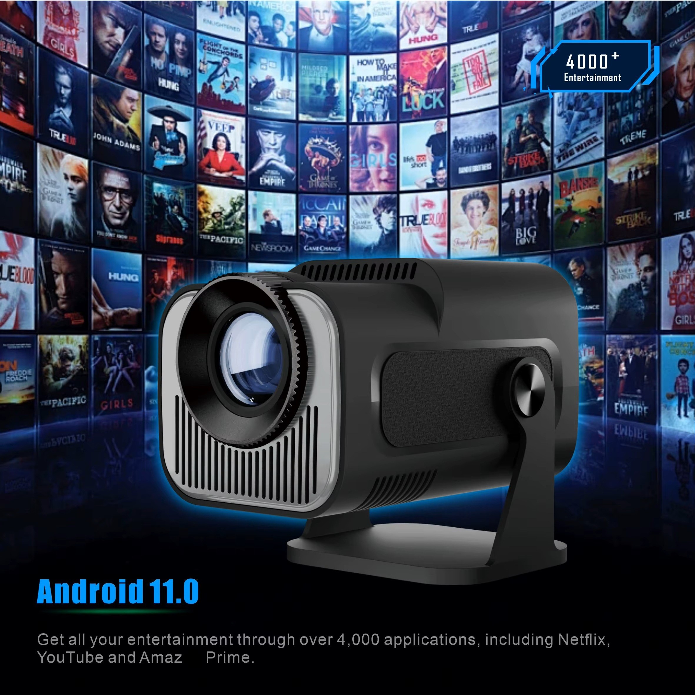 Streama trådlöst via AirPlay eller Miracast, eller använd det inbyggda Android 11-systemet för appar och videouppspelning direkt i projektorn.