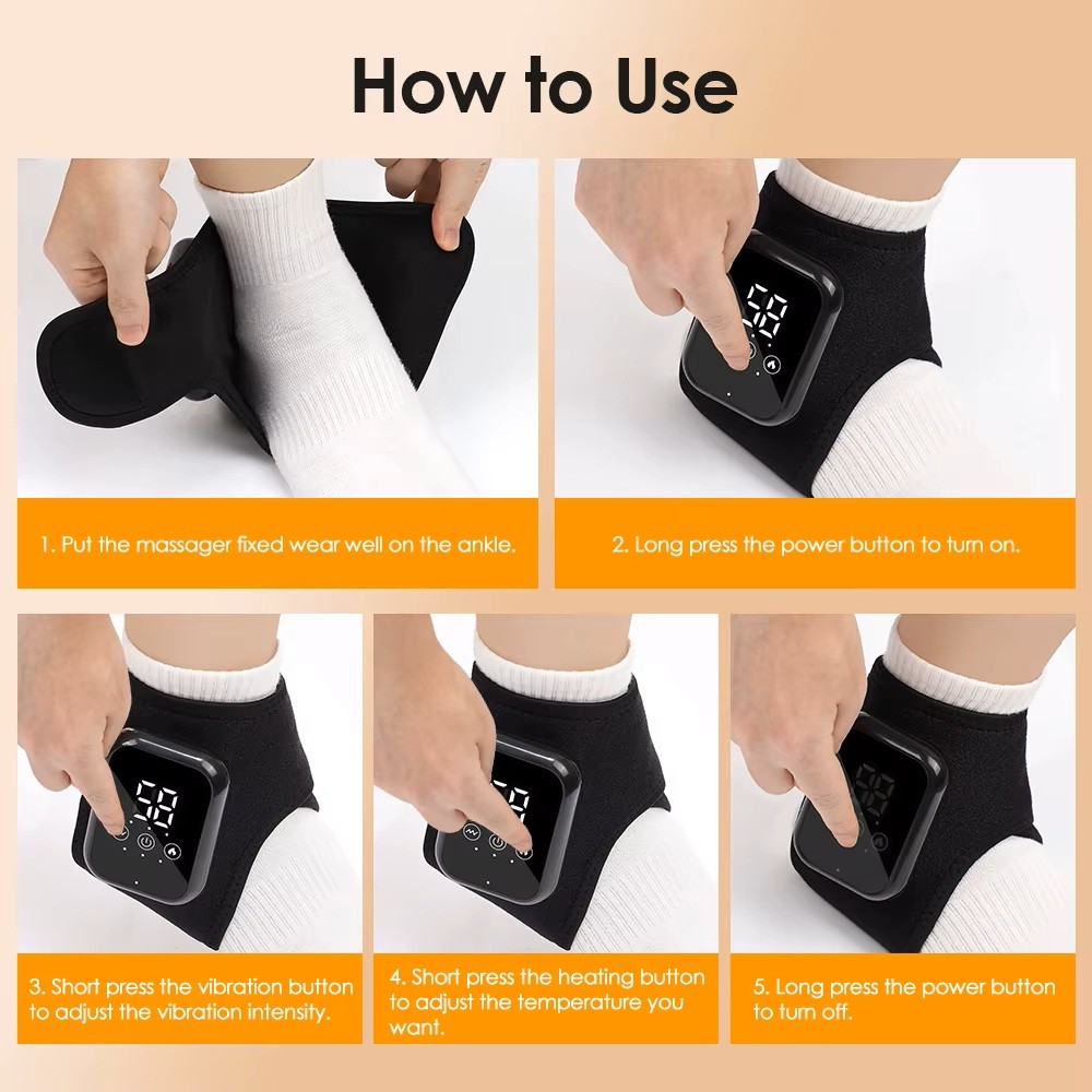 Lindra ömma fotleder, stelhet och trötthet med denna smarta och portabla fotledsmassagerare. Oavsett om du behöver daglig avslappning, återhämtning efter träning eller riktad smärtlindring ger enheten effektiv värme och vibrationsmassage – anpassad efter dina behov.