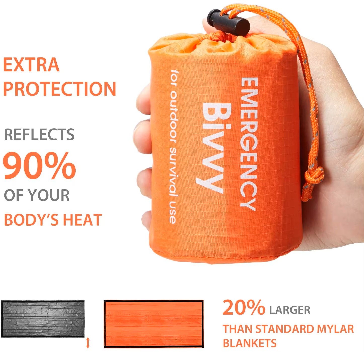 Denna kompakta nödsovsäck är en oumbärlig del av din utrustning när något oväntat inträffar. Tillverkad av slitstarkt PE-material och designad i kuvertform (envelope style) ger den effektivt värmeskydd, vindskydd och skydd mot väta. Kan användas både som sovsäck, nödshelter eller bivacksäck.