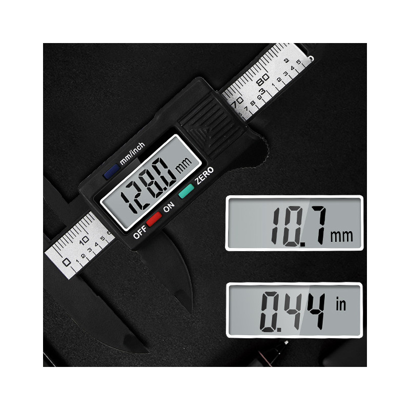 Få snabba och exakta mätresultat med detta digitala skjutmått på 150 mm – ett pålitligt precisionsverktyg för både proffs och hemmafixare. Skjutmåttet är tillverkat i stark plast med kolfiberförstärkning, vilket ger låg vikt, hög hållbarhet och bekväm användning även vid längre arbetspass.
