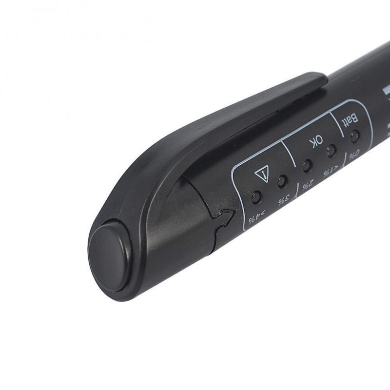 Bromsvätskan bör regelbundet kontrolleras för fuktinnehåll, eftersom för hög fukthalt kan minska bromseffektiviteten och leda till farliga situationer. Denna bromsvätsketestare gör det möjligt att testa fuktinnehållet i bromsvätskan på bara några sekunder och visar vattenhalten i procent via ett lättförståeligt LED-indikatorsystem.